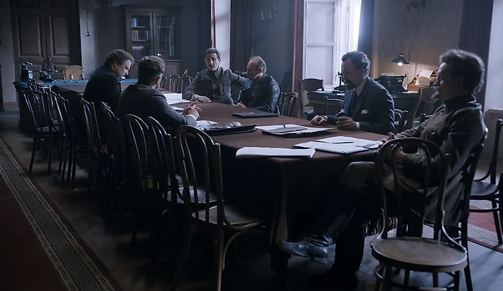 6 июля 1918 года. В посольстве Германии Блюмкин убивает посла Германии, о чем докладывают Ленину. Лидер понимает, что их хотят втянуть в войну с Германией и всеми силами пытается этому помешать.