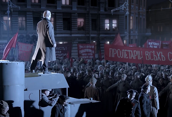 Утром расползаются газеты о связях Ленина с Германией. Вождь соглашается выступить при условии, что в этот день революция отменяется, ведь во главе должна быть дисциплина и контроль! Но в этот момент в здании происходит облава – революционеры сбегают.