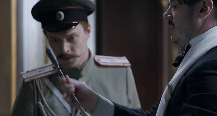 Раздается звонок – Николай II выезжает на вечерю, а их отделу поручено обеспечить охрану государю. Внезапно в здании напротив раздается взрыв такой силы, что в кабинете Курловского вылетают окна.