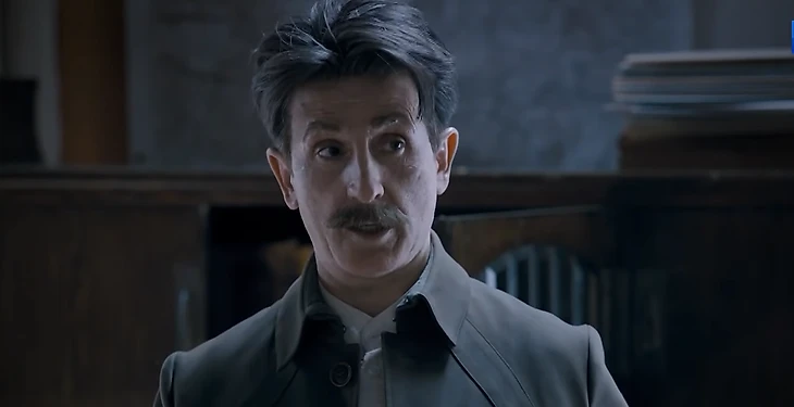 Затем Тихомиров отдает Сталину черную тетрадь, которую нашел в кабинете Ленина – там записки вождя за много лет. Иосиф Виссарионович находит строчки и о себе: «Сталин очень груб. Этот недостаток становится нетерпимым в должности генсека». Грузин признает, что он и правда груб, но только по отношению к раскольникам режима. Из дневника становится понятно, что Ленин хотел его сместить с должности – Сталин считает, что это проявление болезни вождя, поэтому нельзя его осуждать.