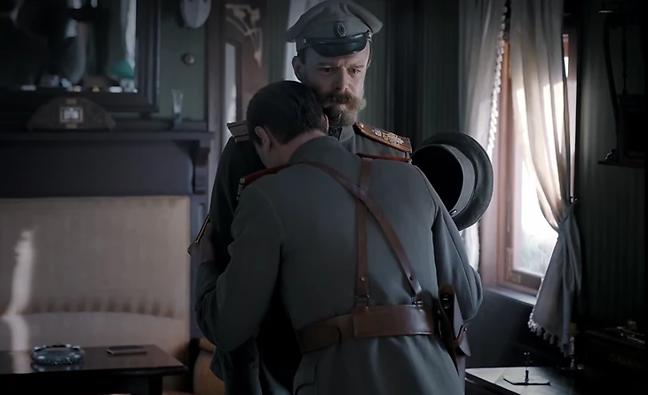● В вагоне Николай II признается Прохову, что сам отказался от побега в Англию, ведь переживает за судьбу России и готов к уготованной участи.