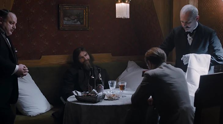 В ресторане «Вена» Распутин рассказывает Прохорову, что царь переживает из-за коррупции и гибели русских солдат на войне, которую развязали англичане: