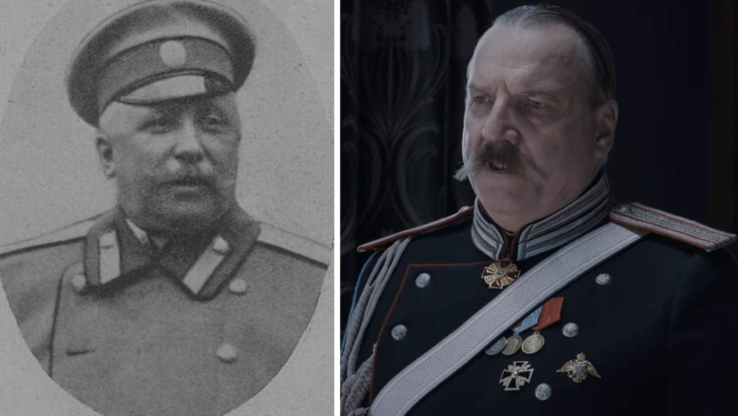 В съемках было задействовано около 350 человек, более 150 актеров воплотили образы реальных исторических личностей. Давайте сравним внешнее сходство артистов с их прообразами. По-моему, кастинг-менеджеры и гримеры проделали впечатляющую работу.