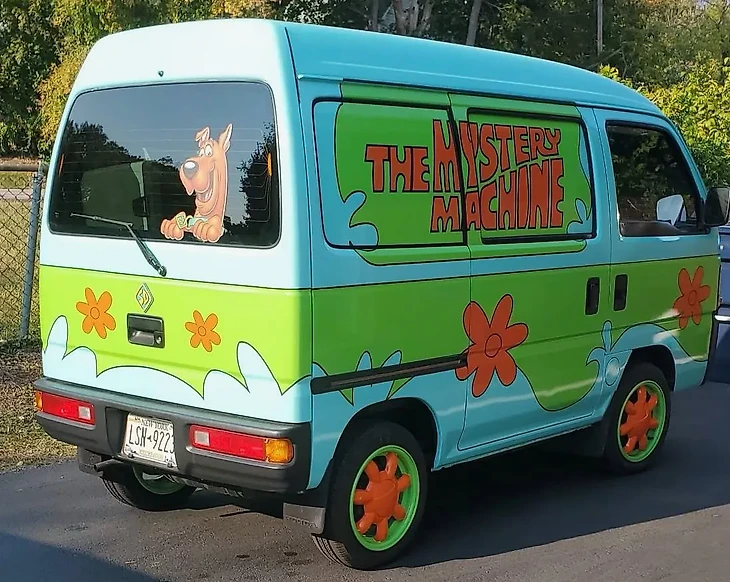 В общем, однозначно нельзя сказать, что же за фургон поступил . Ясно одно – любой минивэн можно раскрасить так, чтобы его можно было хотя бы условно называть фургончиком корпорации «Тайна». Один из таких примеров – Honda Acty 1997 года.