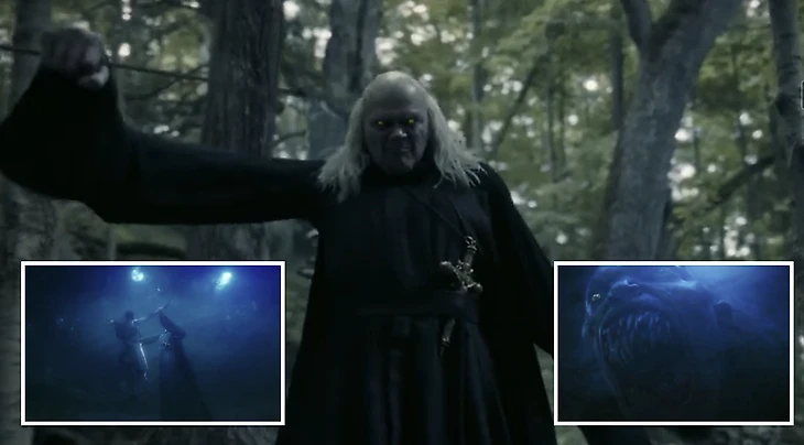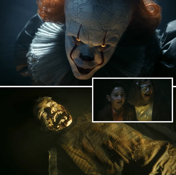 ● Лилли заблудилась в трубах и встретила Пеннивайза в обличии клоуна! Он бежит съесть девчонку, но внезапно останавливается – перед Лилли в воде засветились руны древнего клинка, который выпал у Дэниэля. Пеннивайз отступает в темноту, а девочка поднимает оружие.