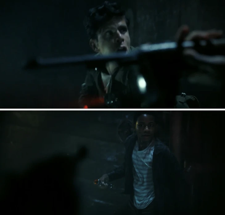 ● Дуэт военных находит выход, но слышит крики детей о помощи. Они считают это галлюцинацией – первым выбегает сын Хэнлона. Руссо понимает, что мальчик настоящий и успевает своим телом спасти парня, прикрыв телом выстрел Хэнлона. Перед смертью друг просит Лероя сделать все, чтобы это было не зря.
