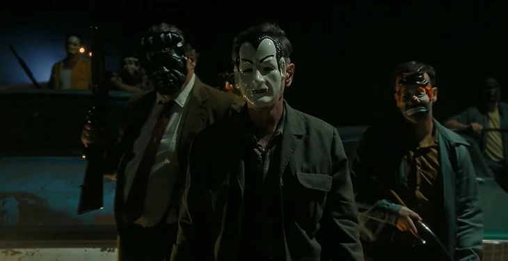 В другом баре бывший следователь сообщает горожанам, что некая женщина дала ему наводку на бар, где прячется Гроган. Он намекает, что теперь у него нет власти, но обычные люди имеют право линчевать преступника. В итоге около семи машин с вооруженными горожанами в масках приезжают к бару, где проходит вечеринка темнокожих.