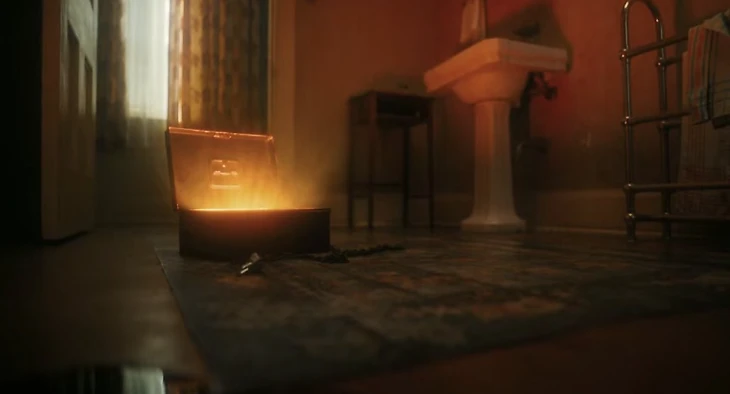 Затем зрителю показывают открытый сундук Дика в комнате – изнутри сияет свет.