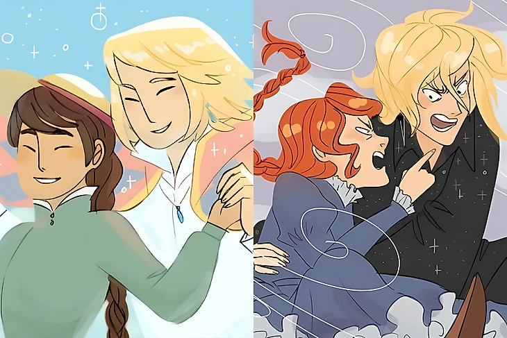 В аниме отношения Софи и Хаула романтичные и нежные с самого начала. Они мило заботятся друг о друге и редко ссорятся. В финале они просто целуются на балконе летящего замка, не произнося слов любви – она кроется в деталях.