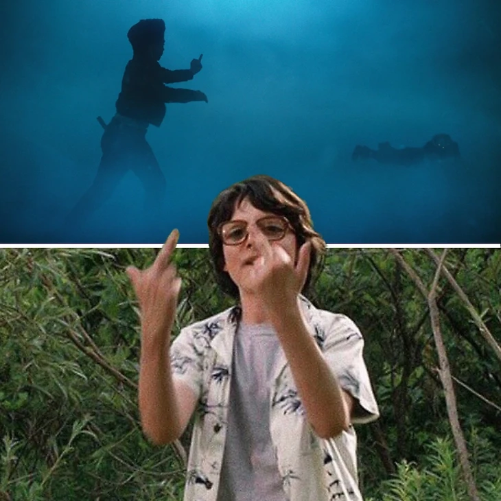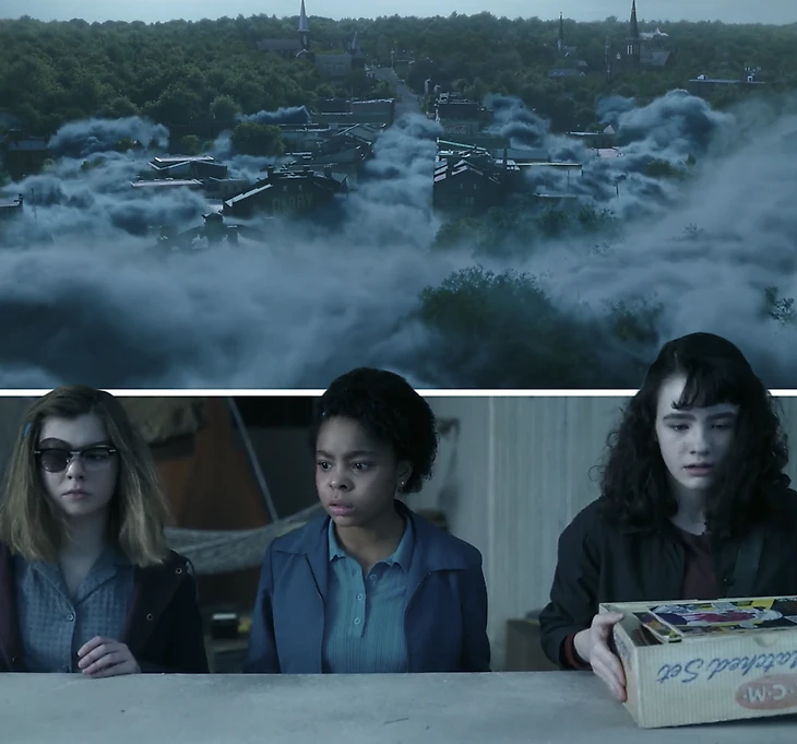 В седьмой серии военные пробуждают Пеннивайза – по городу стелется странный туман. Перед нами пасхалка на ударную волну от ядерного взрыва из-за возвращения клоуна – настолько злодей опасен для мира! Вдобавок тема угрозы ядерной войны тонкой нитью пронизывает весь сериал.