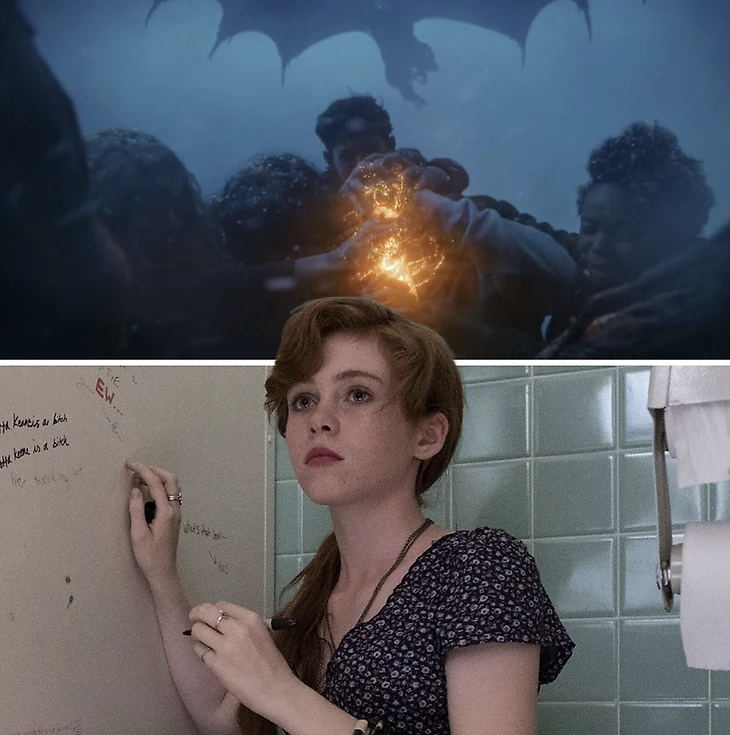 Восьмой эпизод «Зимний огонь» поначалу может показаться лишь описанием сцены зимней битвы с Пеннивайзом на замерзшем озере, но еще это прямая отсылка к появлению Беверли в последней сцене.