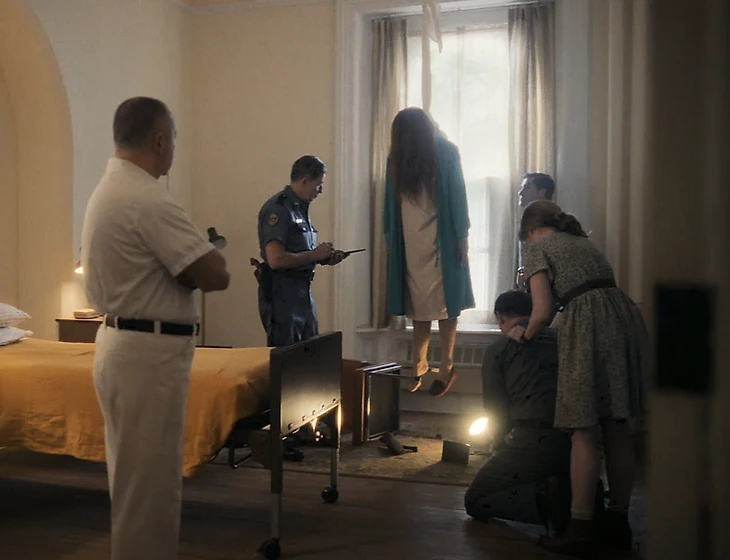 У ног покойной рыдают мужчина с дочкой. Девочка оборачивается – и тут зритель видить Софию Лилис, исполнительницу роли Беверли Марш из «Оно»! Героиня смотрит на миссис Керш – та с жуткой улыбкой произносит: «Не грусти. Ты же знаешь, что говорят о Дерри, дорогая. Никто из тех, кто здесь умер, на самом деле никогда не умирает».
