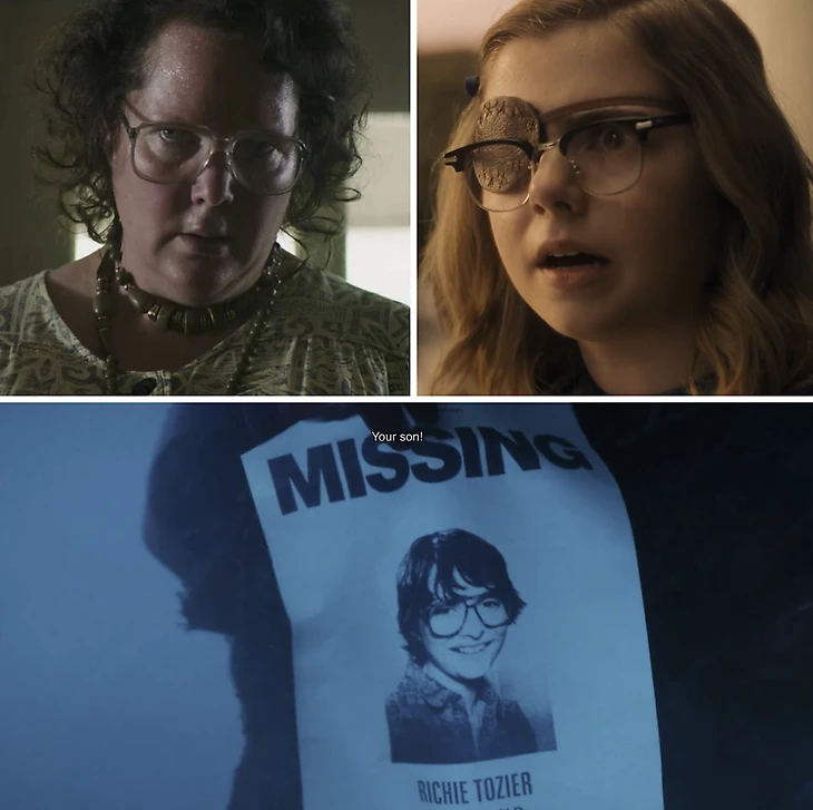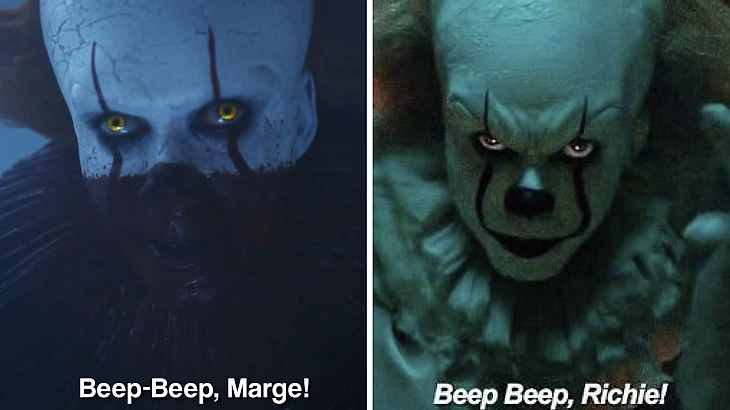 ● Затем Пеннивайз достает плакат с ее будущим сыном Ричи Тозиером и кричит: «Бип-бип, Марджи». В фильме «Оно» монстр произнес «Бип-бип, Ричи» для ее сына.