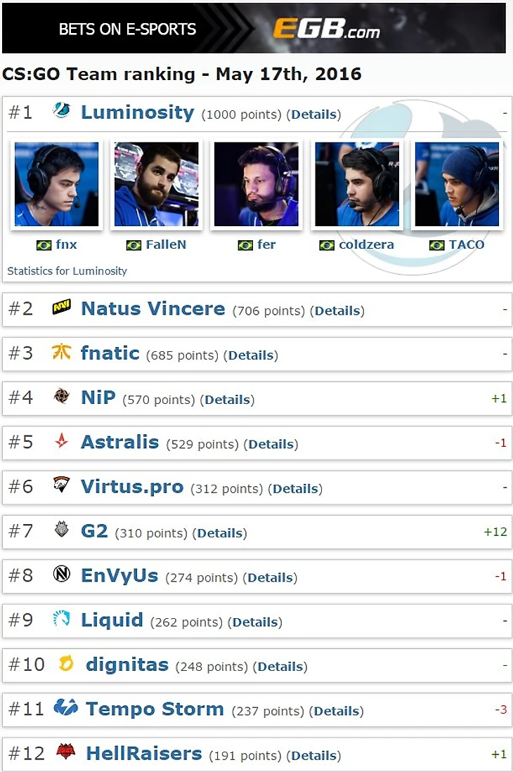 Luminosity Gaming укрепились на первой строчке рейтинга HLTV