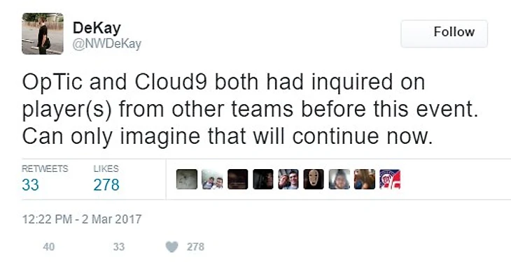 Команды ОpTic Gaming и Cloud9 были заинтересованы в новых игроках до старта IEM Katowice 2017, сообщил инсайдер Ярек «DeKay» Льюис.