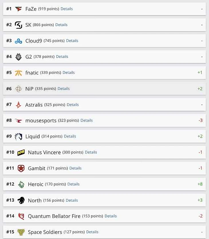 Liquid, после победы на CS Summit 2, переместилась на девятое место рейтинга. Также хорошее выступление на турнире в Лос Анджелесе позволило Heroic подняться на 12-е место, а North – на 13-е. Torqued взобралась на 23-ю позицию, поднявшись на 38 строчек.