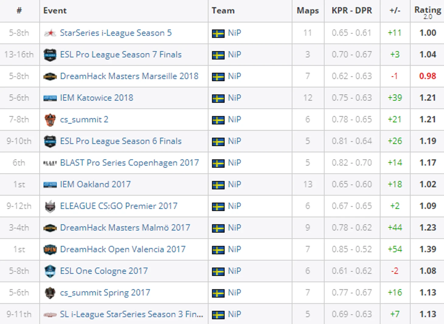 Это лучший результат среди всех игроков NiP за последний год. F0rest и REZ за это же время дважды заканчивали турнир с отрицательным средним рейтингом, GeT_RiGhT делал это пять раз, а dennis – шесть.