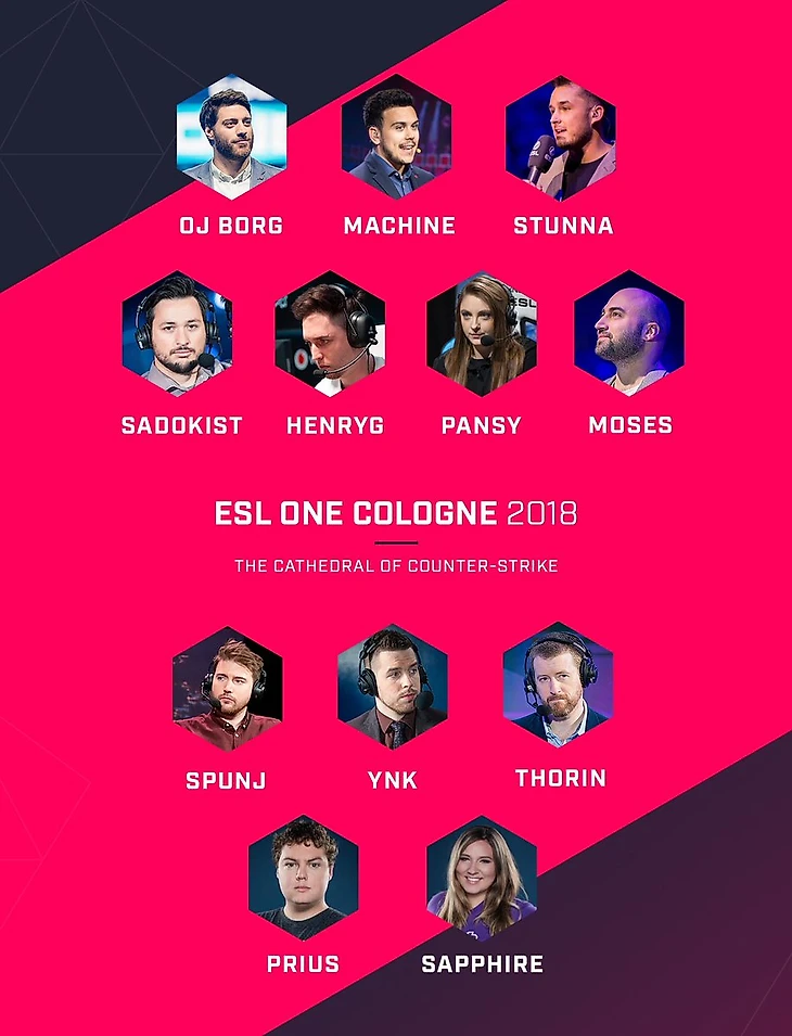 ESL объявила список комментаторов и аналитиков, которые поработают на англоязычной трансляции ESL One Cologne 2018.