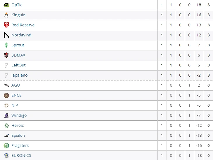 19:00 3DMAX – Ex-Envyus19:00 Nordavind – Team Kinguin19:00 Japaleno – Optic Gaming19:00 Sprout – Red Reserve19:00 NiP – Fragsters19:00 Heroic – Euronics19:00 AGO – Windigo19:00 Epsilon – Ence22:00 TBD – TBD22:00 TBD – TBD22:00 TBD – TBD22:00 TBD – TBD22:00 TBD – TBD22:00 TBD – TBD22:00 TBD – TBD22:00 TBD – TBD