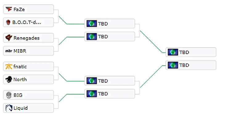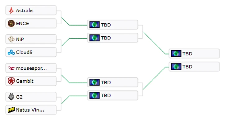 13:00 Astralis 16:5 Ence13:00 NiP 3:16 Cloud914:10 Mousesports 16:8 Gambit14:10 G2 16:14 Na’Vi15:20 Faze Clan 16:9 B.O.O.T-d[S]15:20 Renegades 13:16 MIBR16:30 Fnatic 16:14 North16:30 BIG 16:7 Team Liquid17:40 NiP 0-2 Ence17:40 Astralis 2-0 Cloud921:10 Mousesports – G221:10 Na’Vi 2-0 Gambit