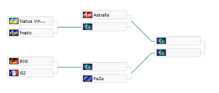 16:00 Natus Vincere 2-0 Fnatic / Четвертьфинал19:30 BIG 2:0 G2 / Четвертьфинал