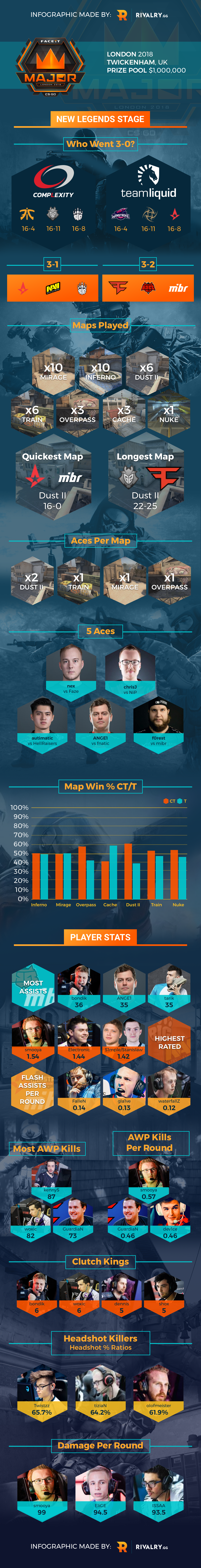 Портал Rivalry.gg опубликовал инфографику со статистикой стадии «Новые Легенды» на FACEIT London Major.
