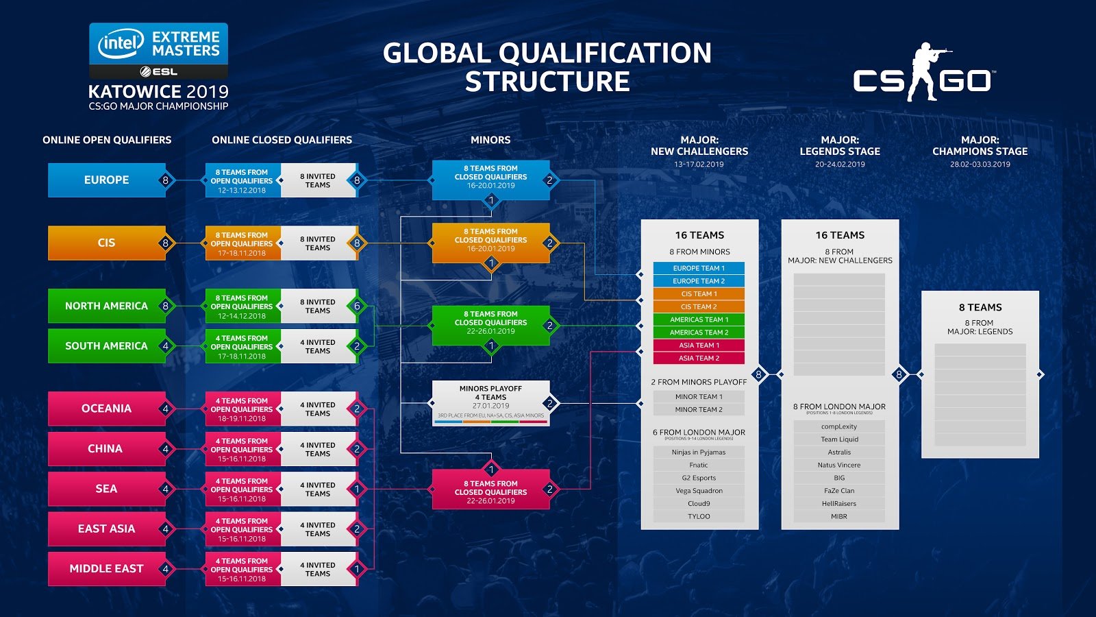 Плей-офф пройдет в формате Double Elimination с Bo3-матчами. В этом году не будет на майнорах не будет финалов. Две лучшие команды каждого из майноров пройдут на Challenger Stage мейджора IEM Katowice 2019.
