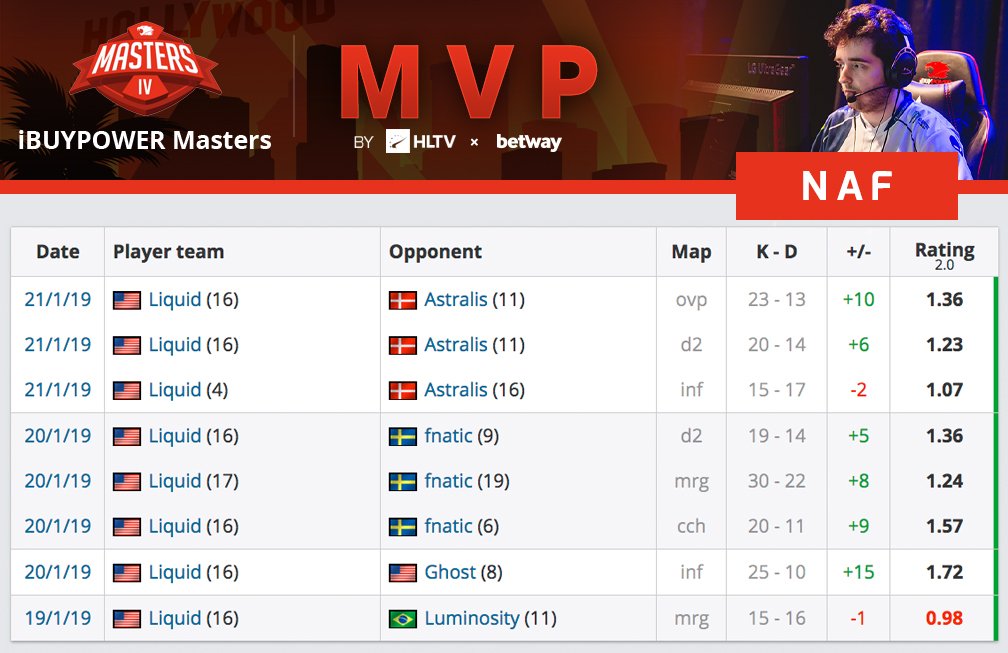 Игрок Team Liquid Киф «NAF» Маркович признан самым ценным игроком iBUYPOWER Masters 2019 по версии HLTV.org.