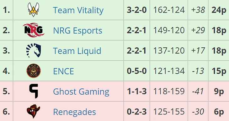 19:00 Vitality 2:1 Ence / Полуфинал22:00 Team Liquid 2:0 NRG / Полуфинал01:30 Vitality 2:0 Team Liquid / Гранд-финал