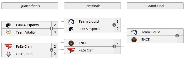 1:20 Ence 2-0 Faze Clan / Полуфинал21:00 Team Liquid 2-1 Ence / Гранд-финал
