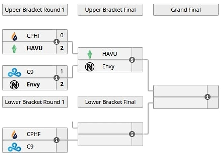 20:00 Cloud9 1-2 Envy23:00 Copenhagen Flames 0-2 Havu