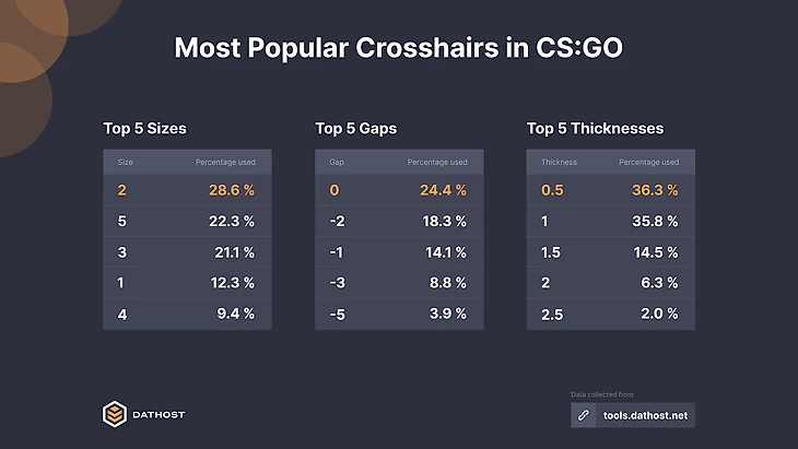 Платформа Dathost обнародовала подборку самых популярных прицелов, созданных в принадлежащем им генераторе.