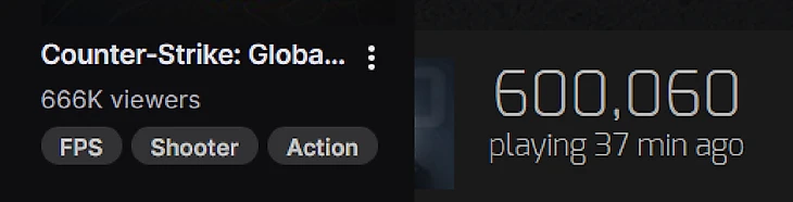 В момент, когда онлайн в CS:GO составлял 600 тысяч игроков, категорию CS:GO на Твиче смотрели 666 тысяч пользователей. Пиковый онлайн IEM Cologne 2021 достиг отметки в 843 тысячи зрителей.