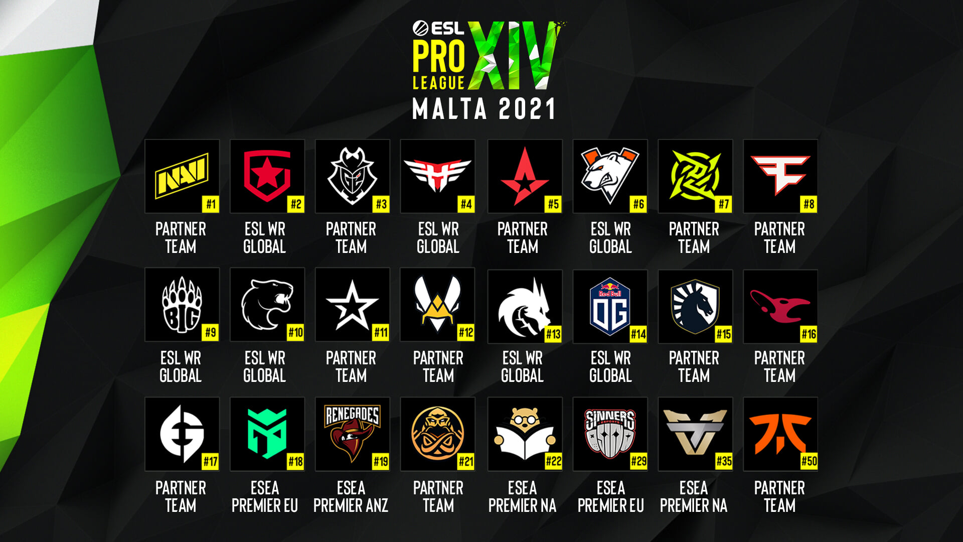 Организаторы ESL Pro League Season 14 объявили полный список участников соревнования.
