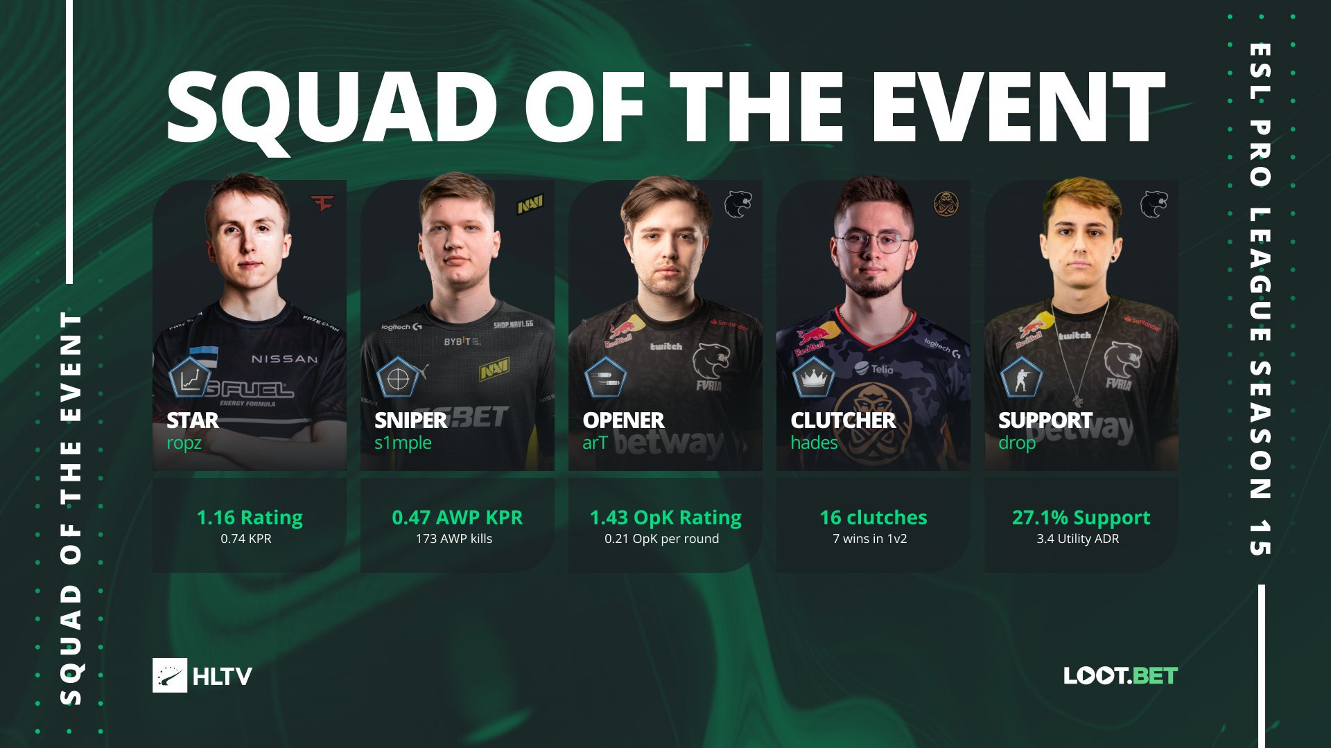 S1mple и Ropz вошли в сборную ESL Pro League 15 по версии HLTV
