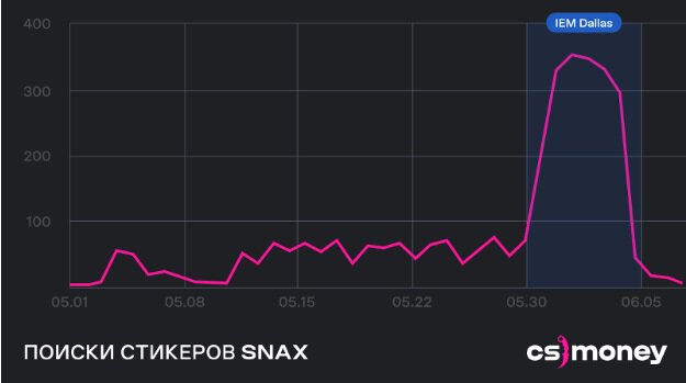 Цена на стикеры при этом выросла неравномерно: от 10% до 164%. Больше всего подорожали стикеры Снакса с мейджоров Cluj-Napoca 2015 и Boston 2018.