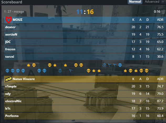 Текущая статистика Mouz – 1-1.