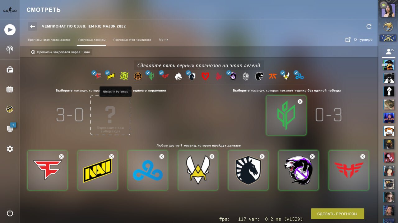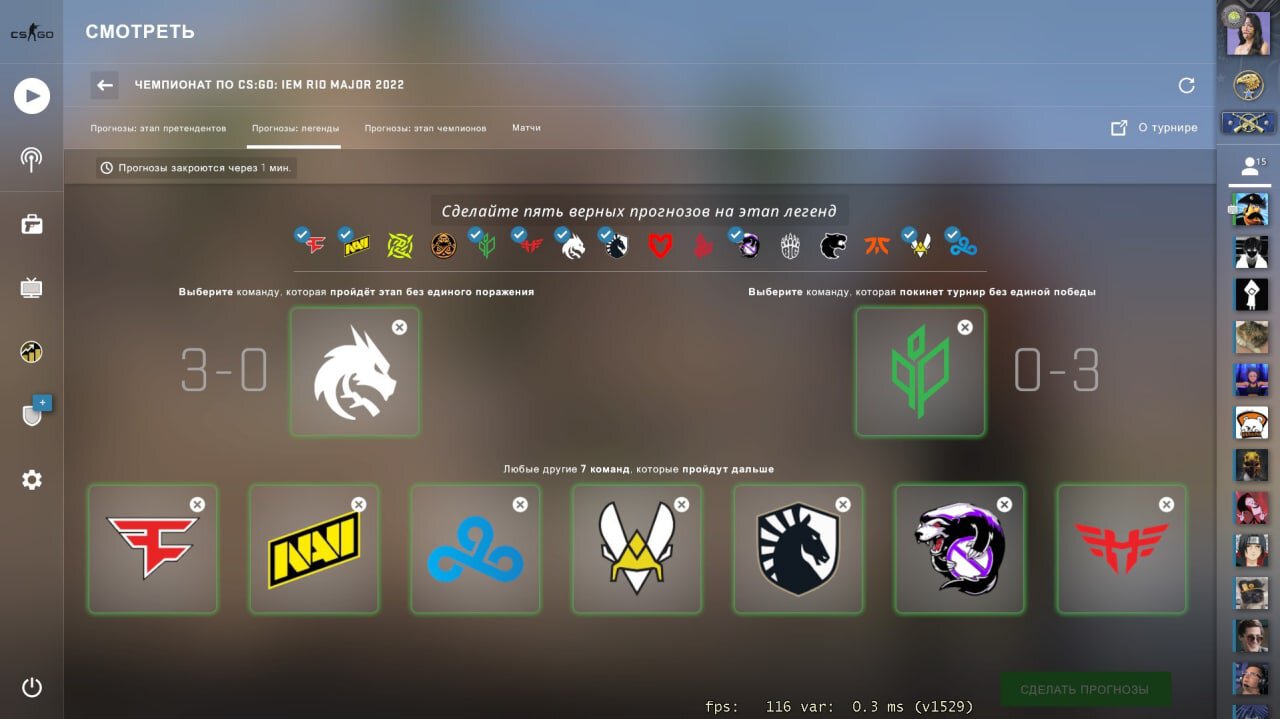 Valve забыла закрыть прогнозы Pick’em для стадии «Легенд» IEM Rio Major.