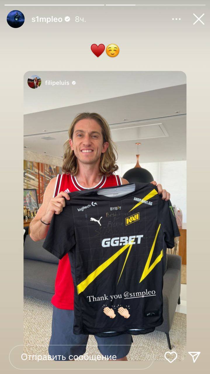 S1mple подарил футболку NAVI футболисту Филипе Луису