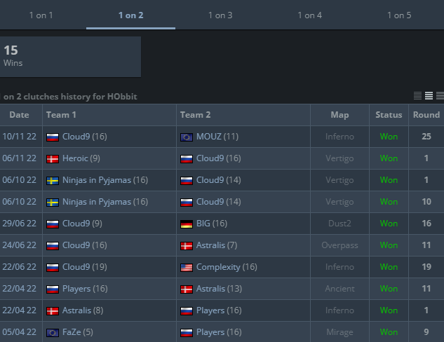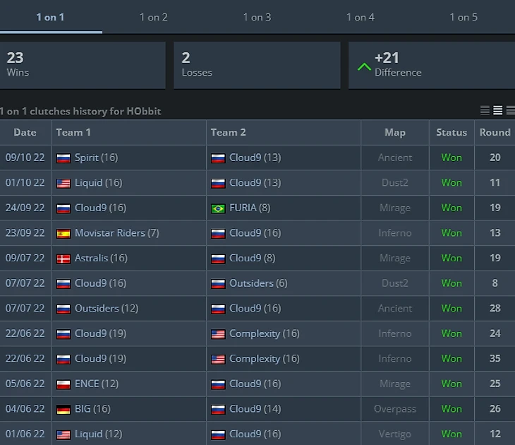 Hobbit выиграл 23 из 25 клатчей 1в1 в 2022 году