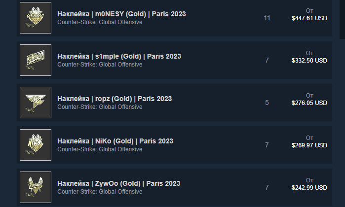 Золотой стикер M0nesy к мейджору в Париже по CS:GO продают за 35 тысяч рублей, Симпла – за 26 тысяч