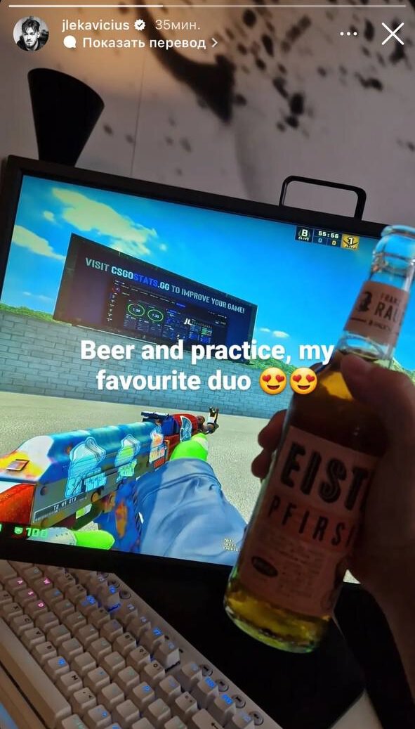«Пиво и тренировки – мой любимый дуэт», – подписал снимок Юстинас «jL» Лекавичус.