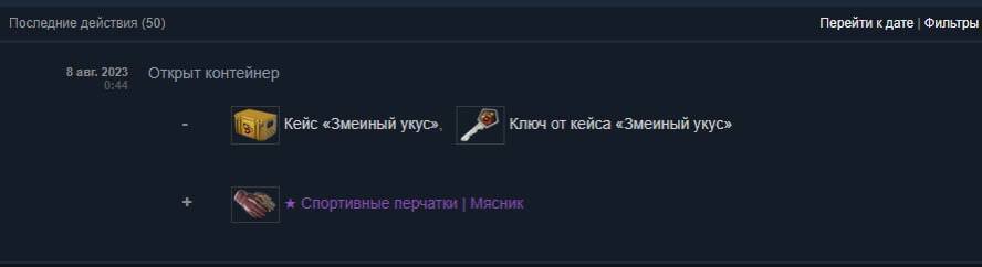 Игрок открыл кейс «Змеиный укус», из которого ему выпали ★ Спортивные перчатки | Мясник в качестве «после полевых испытаний».