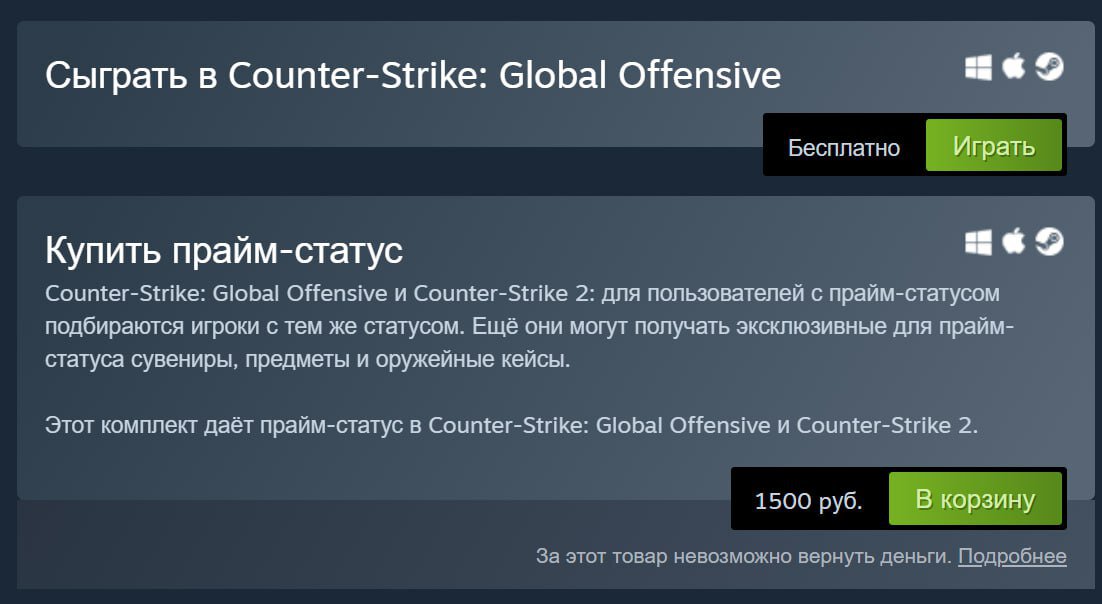 Valve подняла стоимость прайм-статуса в CS:GO до 1500 рублей