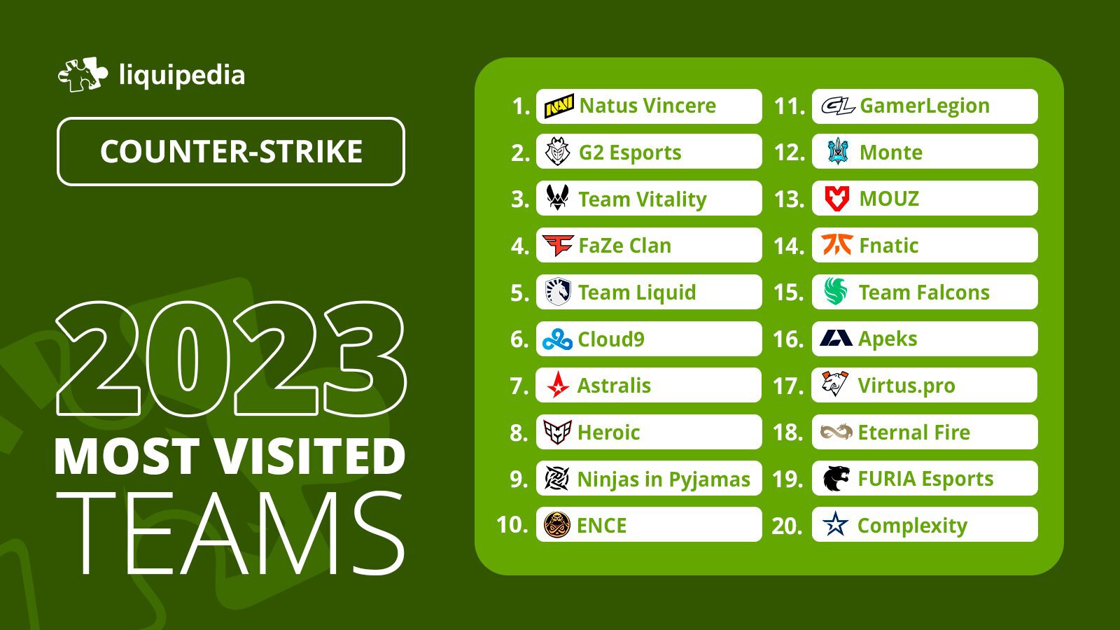Страница NAVI стала самой посещаемой в CS-разделе Liquipedia в 2023 году, Cloud9 – на 6-м месте
