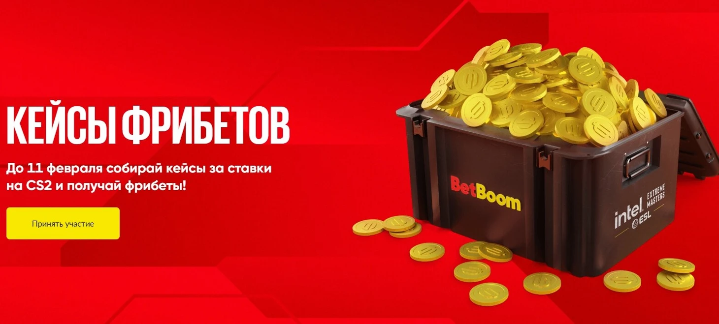У букмекерской компании BetBoom продолжается специальная акция «Кейсы фрибетов» по киберспортивному шутеру Counter-Strike 2. Она проходит с 3 по 12 февраля.
