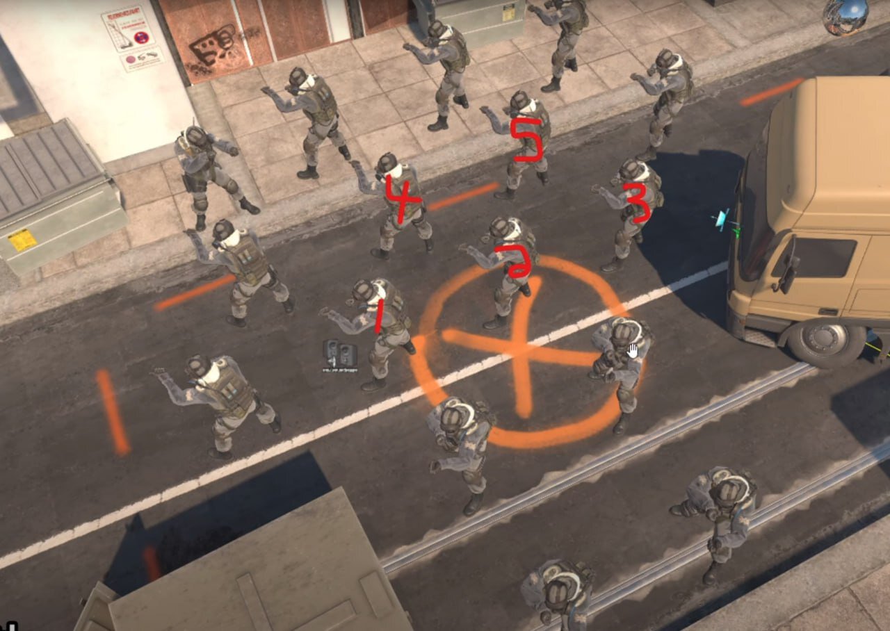 На Overpass, к примеру, оставили только эти 5 точек спавна, как на картинке. То есть любители пикать фонтан с AWP (это я) жестко обломились. Да и инста-смоки теперь бросаются дольше.