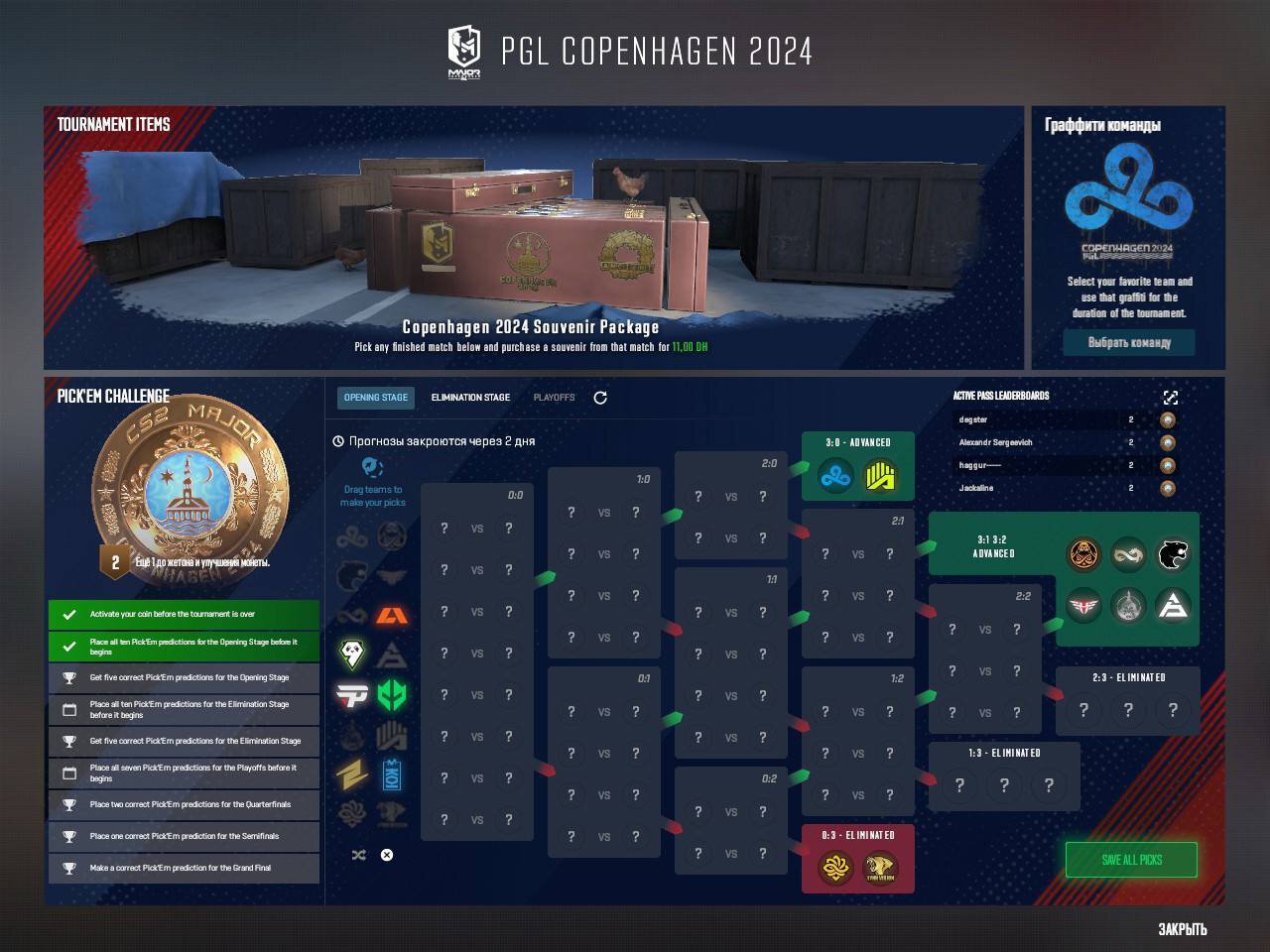 Degster показал свой Pick’Em на PGL Major Copenhagen.