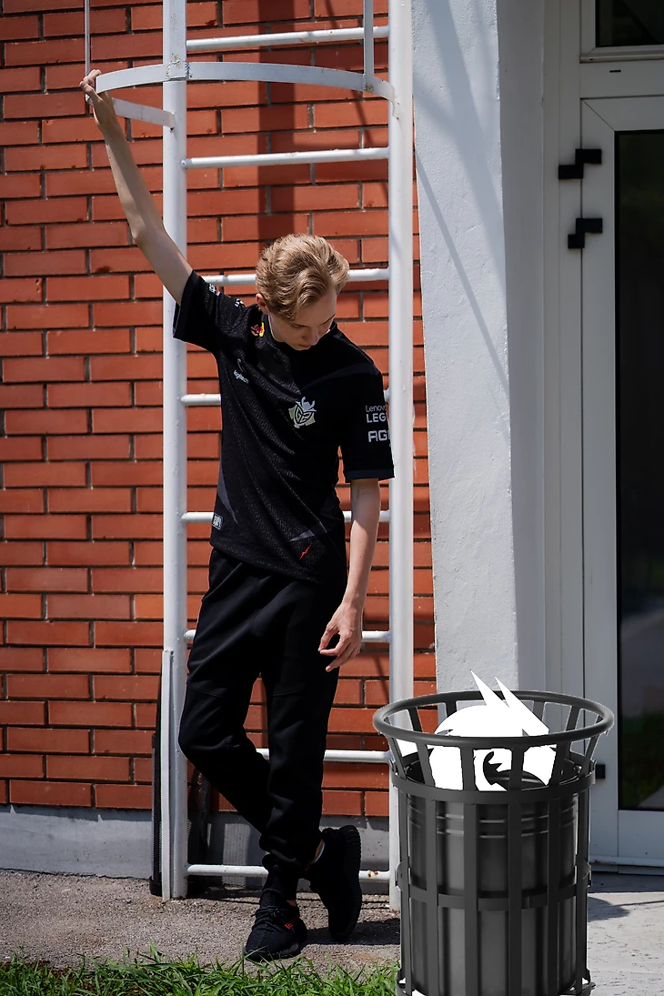 «Разобрались с мусором🗑️», – прокомментировал официальный аккаунт G2 в твиттере фото с Монеси, смотрящим на логотип Spirit в урне.