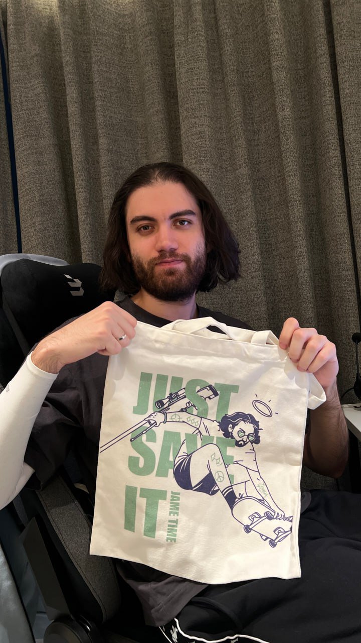 «Просто засейви! JAME TIME». Джейму подарили сумку с его изображением на скейте с AWP в руке
